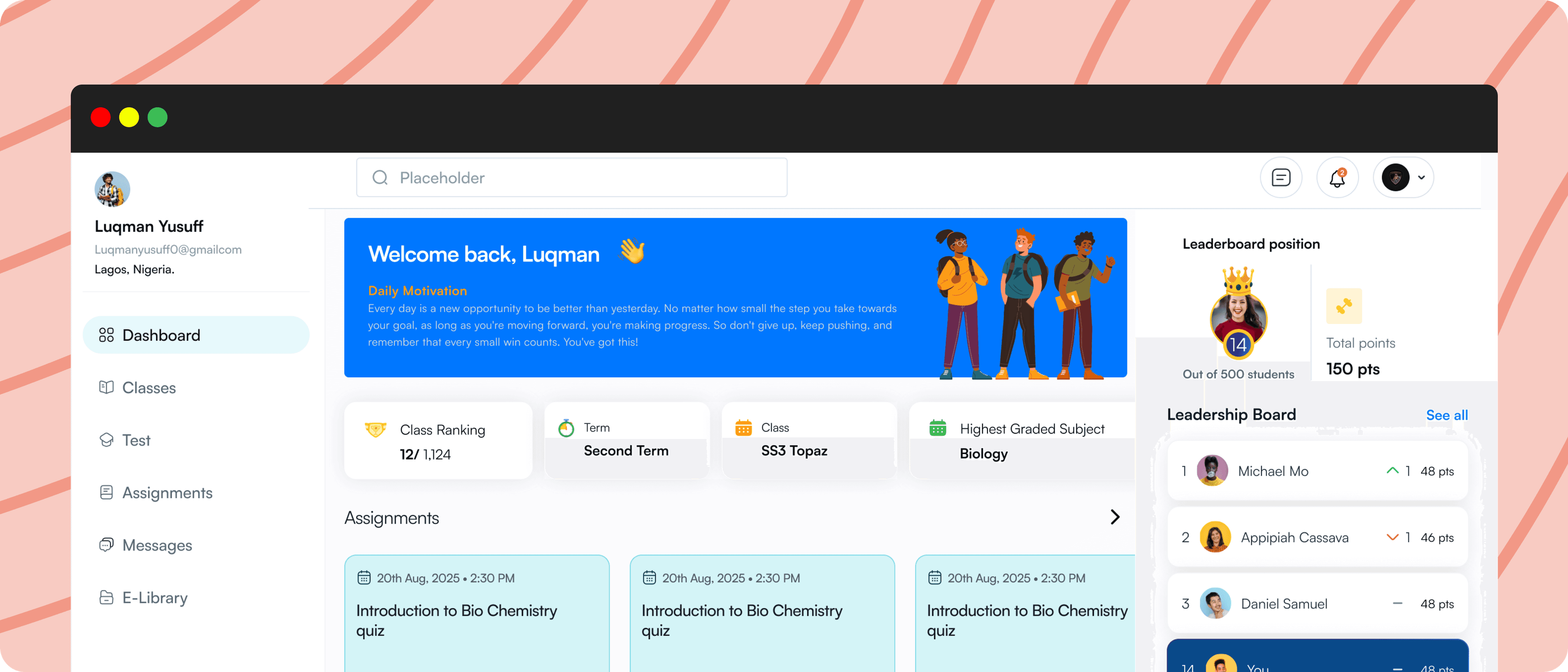 Everything you need as a student, all in one place. Here are some of the features designed to make learning simple and stress-free.
